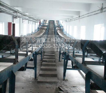 皮帶輸送機(jī)是一種輸送量大、運(yùn)行費(fèi)用低、使用范圍廣的輸送設(shè)備,按其支架結(jié)構(gòu)有固定式和移動(dòng)式兩種;按輸送材料有膠帶、塑料帶和鋼帶之分。輸送機(jī)的工作環(huán)境溫度一般在-10℃-+40℃之間,要求物料溫度不超過(guò)70℃;耐熱橡膠帶可輸送120℃以下的高溫物料。物料溫度更高時(shí)不宜采用膠帶輸送機(jī)。當(dāng)輸送具有酸性堿性油類(lèi)物質(zhì)和有機(jī)溶劑等成分的物料時(shí),需采用耐油、耐酸堿的橡膠帶或塑料帶。皮帶輸送機(jī)的帶寬有六種:500、650、800、1000、1200和1400mm。用戶(hù)可根據(jù)皮帶輸送機(jī)的輸送高度,物料的種類(lèi)、容量、輸送量、輸送長(zhǎng)度等諸因素通過(guò)計(jì)算確定輸送機(jī)的布局以及所選用的膠帶寬度、帆布層數(shù)和膠帶厚度。